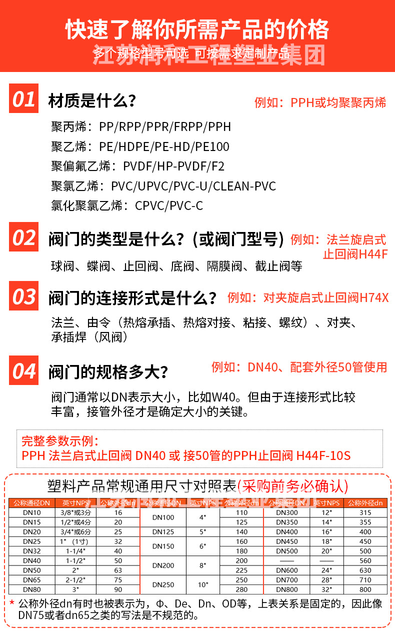 江苏润和工程塑业有限公司主要生产工程化工FRPP管材、PPH管材、PVDF管材防腐管阀件,三通、弯头、法兰、直接、垫环、盲板、钢塑法兰、内丝外丝、管帽以及化工喷淋塔、洗涤塔、废气处理等设备。阀门类:法兰隔膜阀、法兰球阀、手柄蝶阀、涡轮蝶阀、双由令球阀、法兰截止阀、法兰底阀、升降式止回阀、旋启式止回阀、热熔止回阀、板式止回阀、呼吸阀、氟胶蝶阀、玻璃视镜、Y型过滤器、活接、液面计、四通视镜、阻火器、安全阀、背压阀等 咨询电话:17749553660
